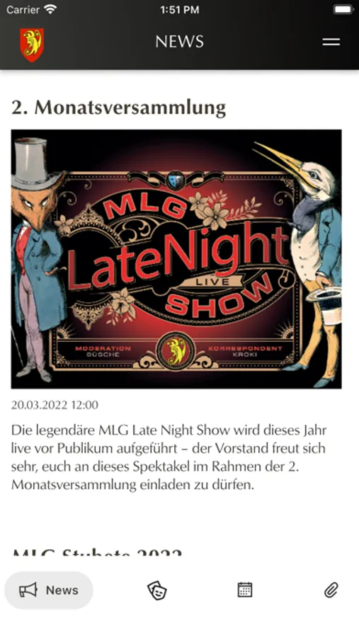 Die App für den Maskenbruder mit allen notwendigen Informationen: News, Termine, Mitglieder und Dokumente.