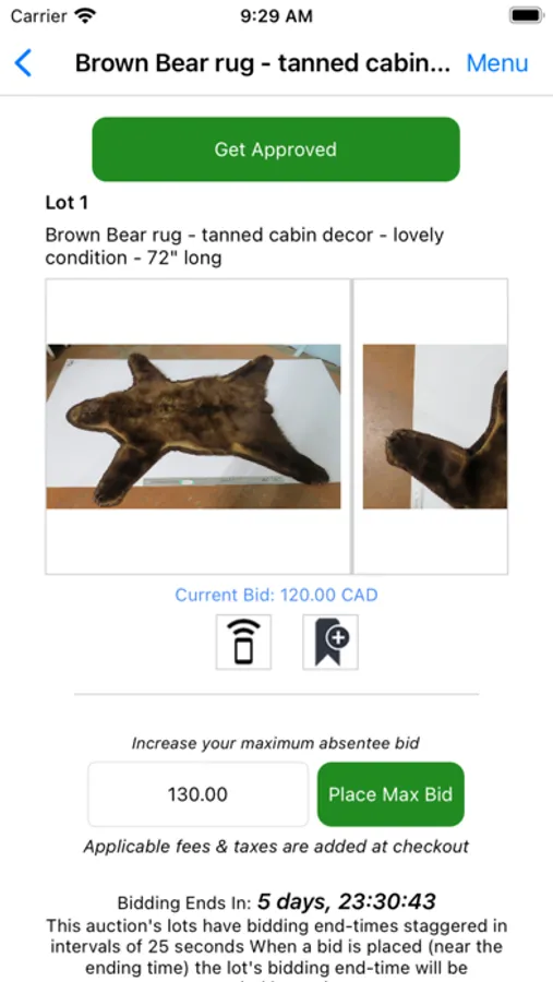 • Browsing of auction catalogs with photos, descriptions and easy use absentee bidding