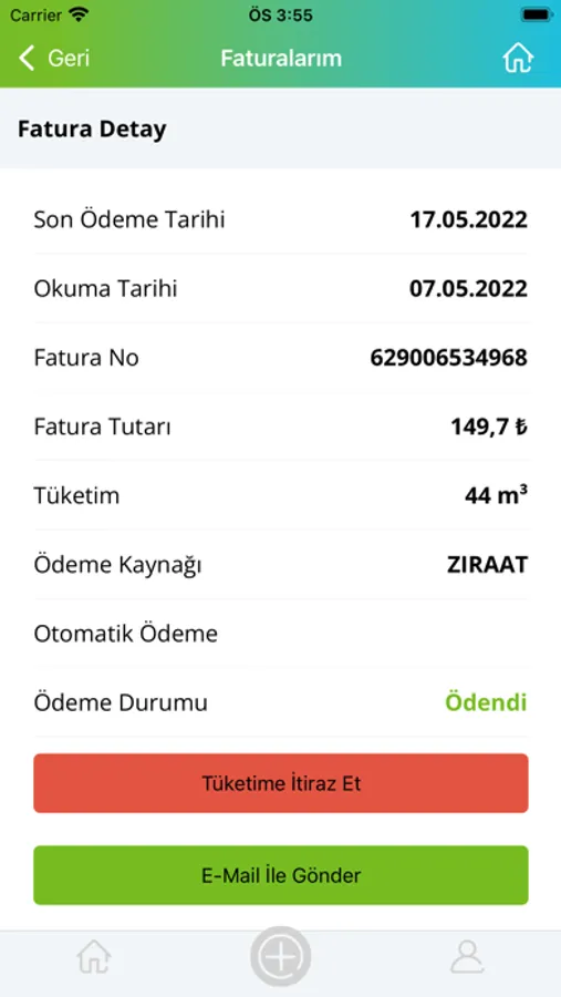Güncel ve geçmişe dönük faturalarınızı takip edebilir, fatura detaylarınızı görüntüleyebilirsiniz. Fatura detaylarınız arasında ödeme durumu, otomatik ödeme talimatı bilgisi, tüketim bilgileri vb. daha birçok detayı sorgulayabilir; fatura itirazı için başvuruda bulunabilirsiniz.