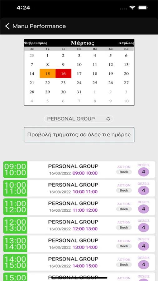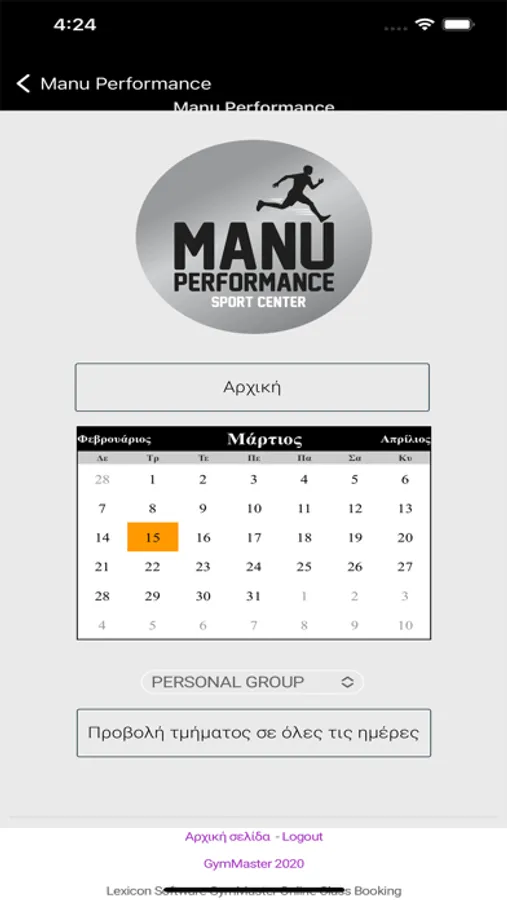 Online booking for the Manu Performance. Members can book to the Online classes and view some useful information about their membership