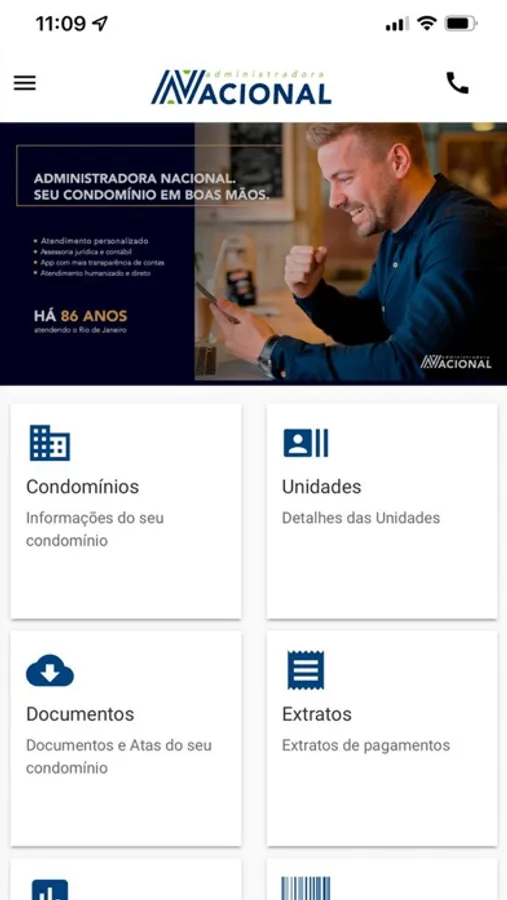 Com o aplicativo de gestão condominial da Adm. Nacional nossos síndicos e condôminos têm controle completo do condomínio, além de diversas funcionalidades úteis. Veja algumas dessas funcionalidades: