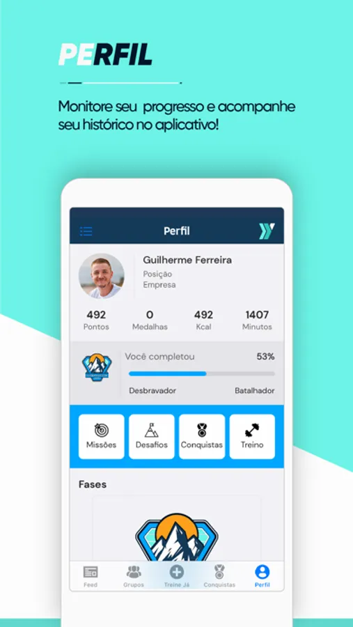 Perfil: Veja o resumo de seu histórico de uso do aplicativo além de acompanhar o status para avançar às próximas fases!