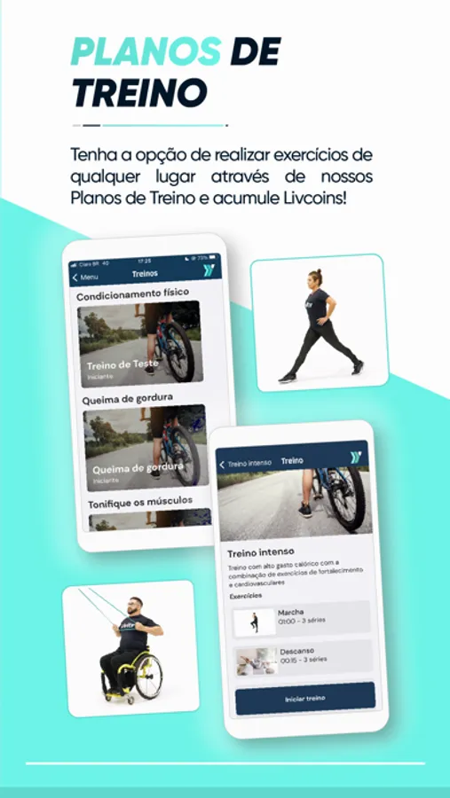 Missões e Desafios: Cumpra os desafios e missões de acordo com seu nível de condicionamento e acumule LivCoins!