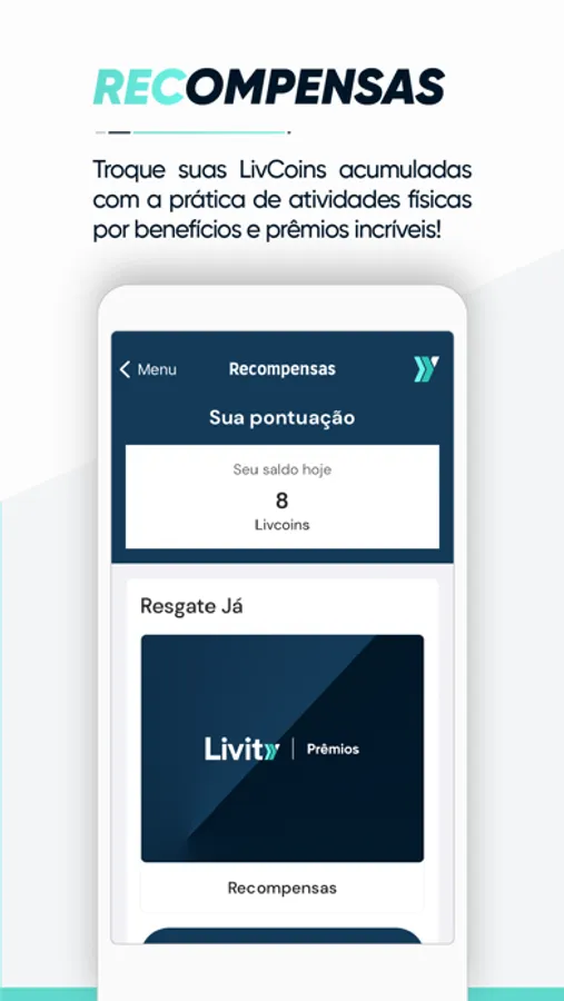 Recompensas: Troque suas LivCoins acumuladas com a prática de atividades físicas por benefícios e prêmios incríveis!