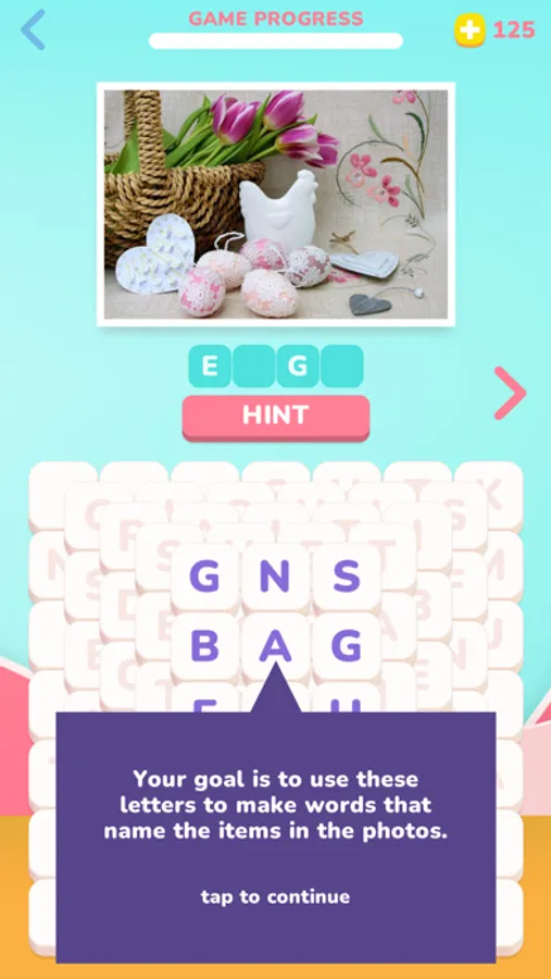 Use the stack of letter tiles to make words. The tiles are arranged in a pyramid similar to mahjong solitaire. You goal is to use all the letters to make words that describe what you see in the photos. When all the words are found, the next level will be unlocked for more fun! Have fun this spring and try to find all the words while looking at amazing pictures!