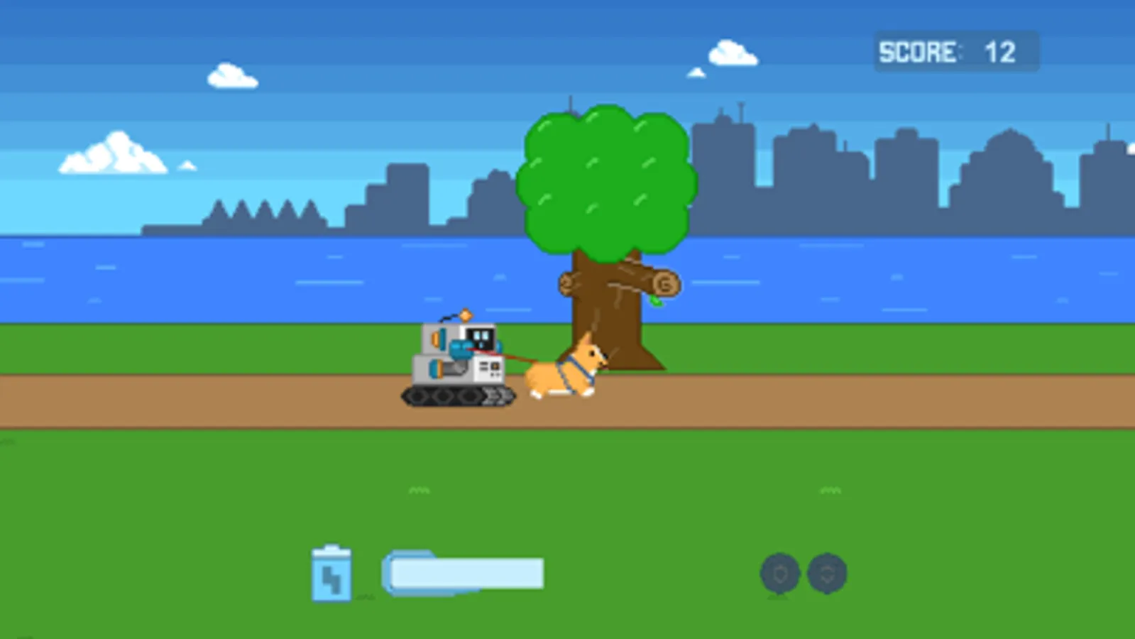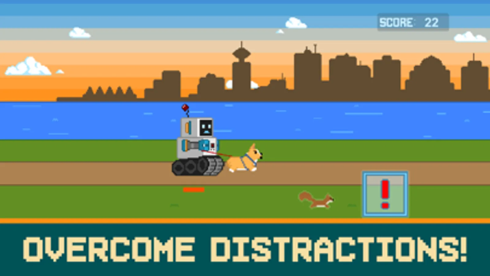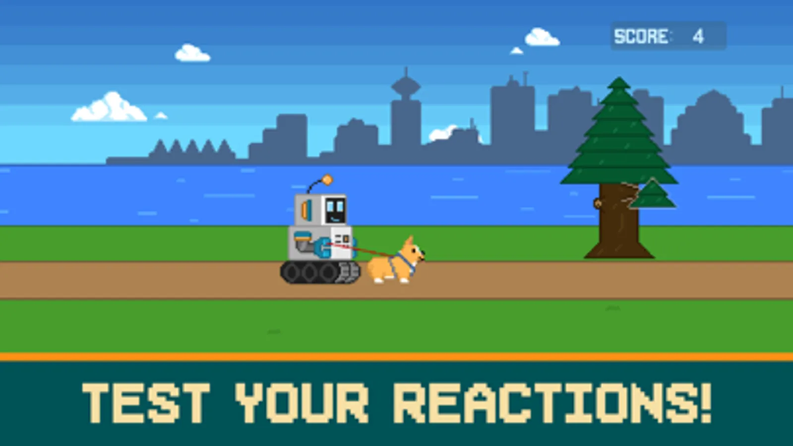 What do corgis need? That's right! A robot butler to take them on walks! Become the best dog walker around by keeping up with your corgi. The longer your walk is, the more money you'll get to buy upgrades and hats!