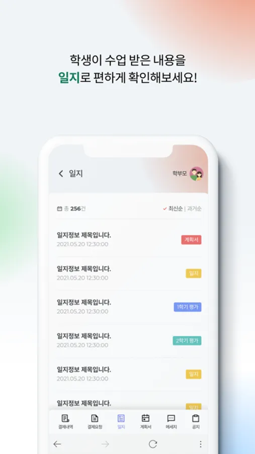 등록된 계획서, 일지 등 학생의 수업정보를 바로 확인