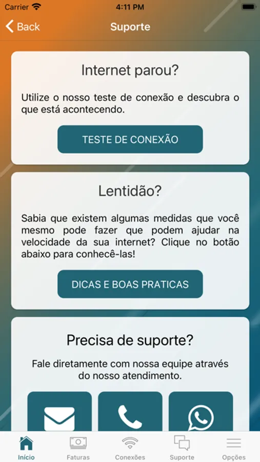 • Realização testes de conexão e velocidade;