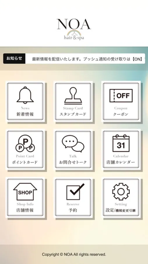 ・【NOA(ノア)】からの最新情報をプッシュ通知で受け取れます。
