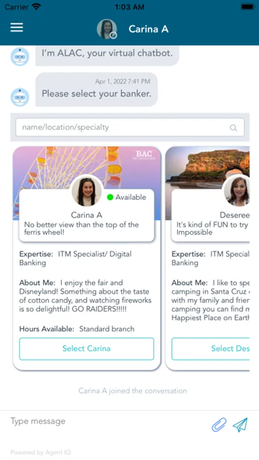 Smart ALAC combines all-access connection in one super-smart and secure AI-powered app that makes messaging a BAC banker as easy as messaging a friend – anywhere, any time. Welcome to the latest in a long history of tech-savvy BAC banking products. Smart ALAC connects customers with a real BAC employee who will be their dedicated personal banker. Customers can review banker profiles and select the individual with whom they prefer to work. The chosen banker will be available to assist our customer with their banking needs, answer questions, provide helpful information and provide them with friendly, one-to-one service wherever they are.