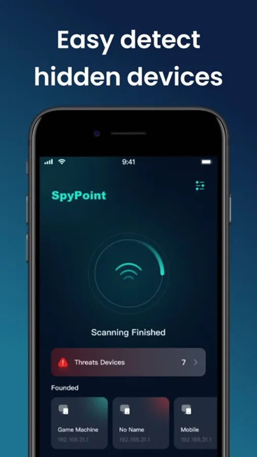 SpyPoint gives the most important information about your network, shows all connected devices and any WiFi around you!
