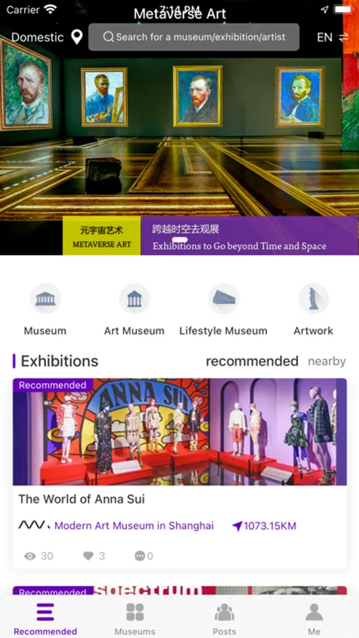 Visits to museums offline are restricted by time and space. Fortunatly, our APP 'Metaverse Art' now enables people to enjoy visits to art galleries and museums from around the world beyond time and space. Specifically, by employing virtual-reality methods, 'Metaverse Art' offers visitors immersive experience without leaving home: