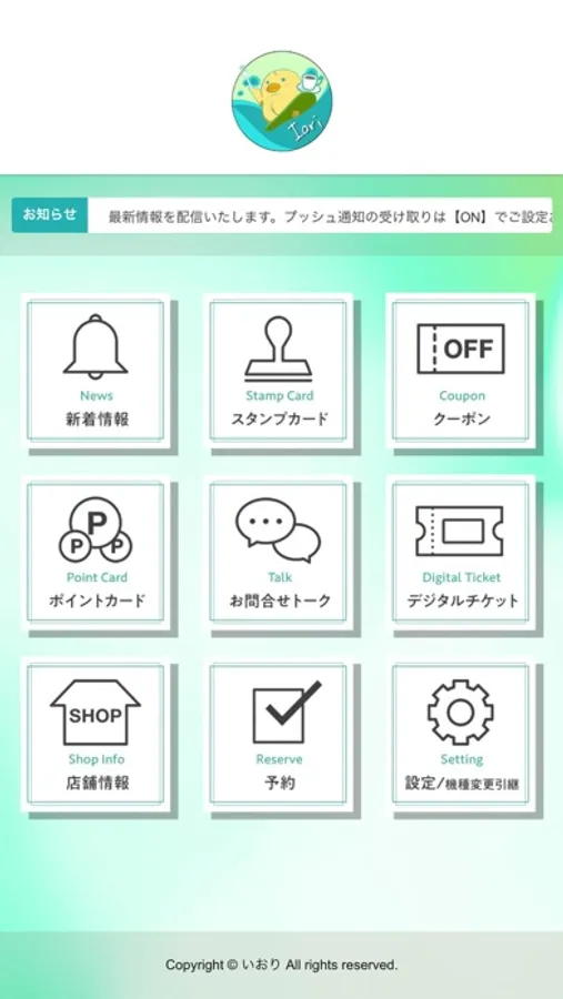 ・【喫茶 いおり】からの最新情報をプッシュ通知で受け取れます。
