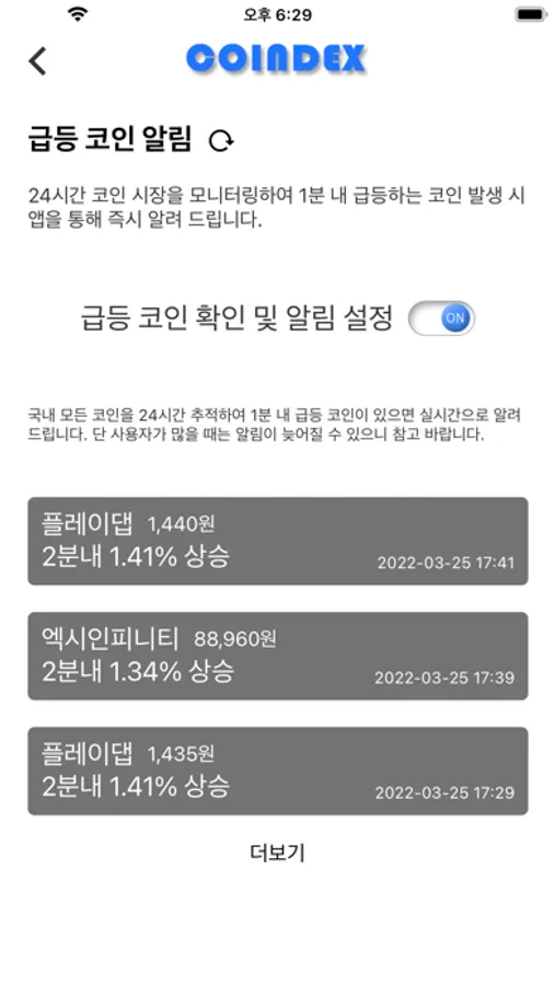 코인덱스는 24시간 동안 실시간으로 변하는 코인을 모니터링하여 급등하는 코인이 발견되면 실시간으로 알려드립니다.