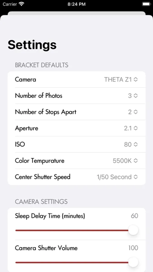 • Be aware that adjusting the camera shutter sound volume and the sleep delay time writes these changes to the camera, overwriting any previous camera setting. If you change the sleep time to 10 minutes it will stay that way even when HDRI Prep isn't connected or running.
