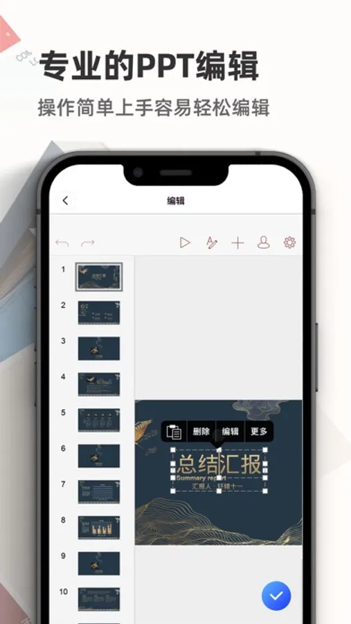 #极简操作,上手简单,轻松编辑模版,十分钟高效制作高质量的PPT。