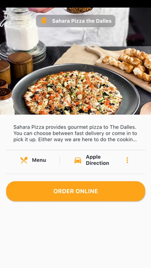Sahara Pizza The Dalles restaurant app has many different functions. It contains an online ordering link, restaurant images, address and driving directions, store hours, menus, and many other great features.