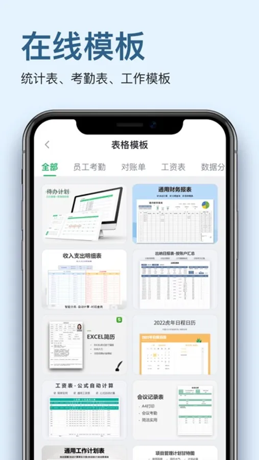 * 使用模板,优选大量精品表格模板,包括:财务报表、人力资源、日程管理、工作规划、个人简历等,随时在线编辑