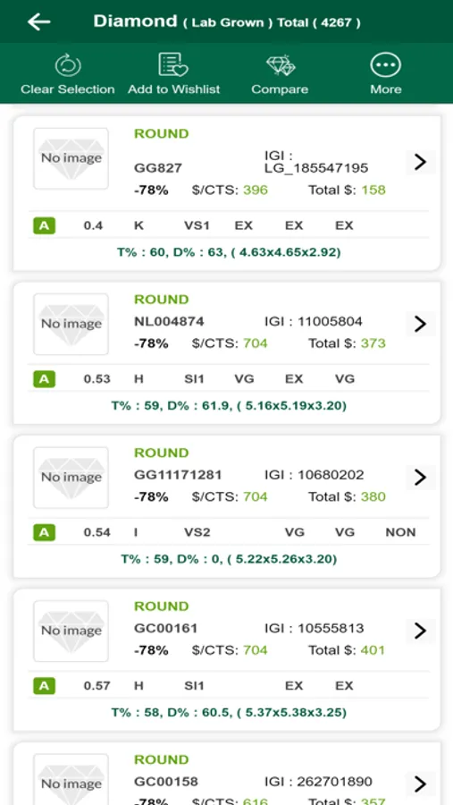 • DNA: This feature will enable you to get all the possible details of the diamond you would need.