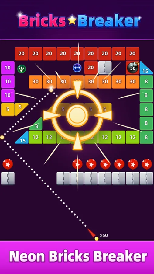 Bricks Breaker: Hit Ball Blast is a classic addictive shooting ball game with neon style!