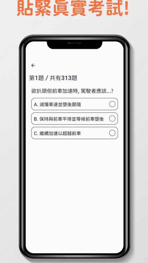 此應用程式包含了超過500條題目,模擬運輸署「甲部電腦筆試」,每次限時20分鐘,隨機抽出20條三選一的選擇題,完成後即時顯示結果。用戶更可以翻查試題,程式會一次過顯示各題的正確答案及用戶的選擇,讓用戶更容易掌握題目的相異,分辨重點。