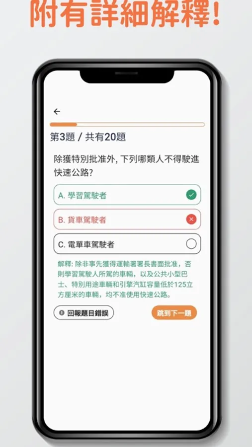 .系統會自動記錄曾經錯誤的題目,方便考試前重點重溫。