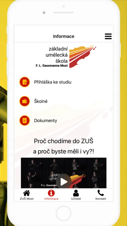 Gassapka je mobilní aplikace Základní umělecké školy F. L. Gassmanna, Most. Chcete studovat umělecké obory? Vyberte si z hudebního, výtvarného, tanečního nebo literárně dramatického oboru.