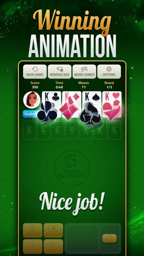 Klondike Solitaire is the most popular free solitaire game. It’s the perfect way to sharpen your brain and challenge yourself in your spare time! That’s why we made a combination of smooth gameplay and animations for this timeless classic. The Solitaire is also known as Patience or just Klondike.