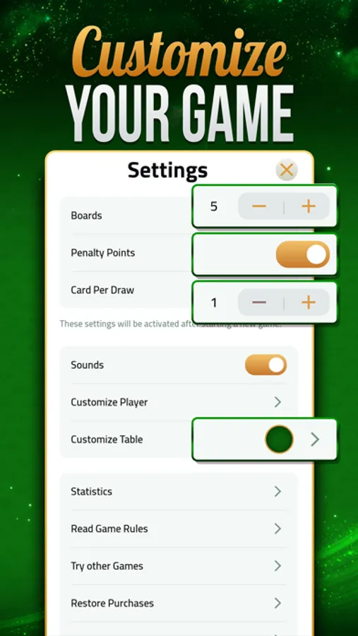- Choose between 3, 5 and 7 boards. Change the boards when out of moves.