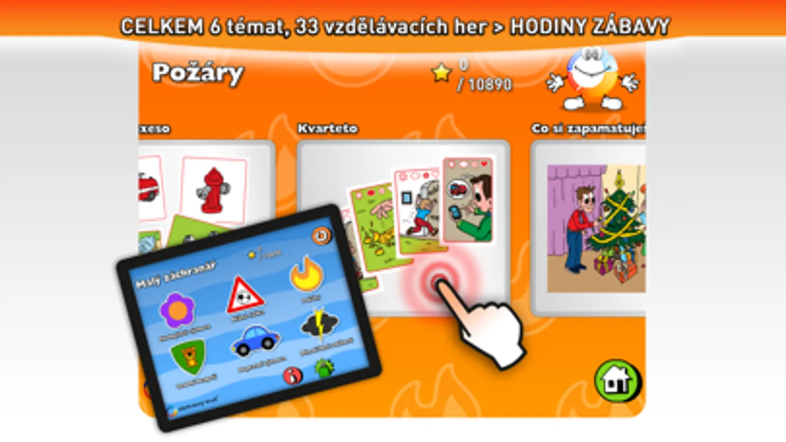 Aplikace Malý záchranář přináší celkem 33 vzdělávacích zábavných her, ve kterých se seznámíš se všemi riziky a nebezpečnými situacemi, se kterými se můžeš potkat. Seznam se s nimi, splň správně úkol, sbírej body. Čeká na tebe spousta zábavy v podobě puzzle, pexes, srovnávaček, tipovaček, hádanek a mnoho dalších. Všemi úkoly tě provede náš maskot – Pan Kroužek – kterému svůj hlas propůjčil bezva herec Martin Dejdar.