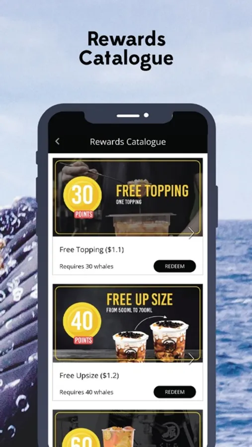 Joining as a member, you will straight away receive a welcome drink in your wallet. Moving forward you will also be entitled for collecting whales when you purchase with us, every dollar spent is entitled a whale, you join as Beluga Whale and upgradable to Orca and eventually Bule Whale when more whales are collected along the way. How? Tell cashier you are a member and scan your member card QR code in the app at our counter QR code scanner to earn whales upon every transaction made at cashier counter.