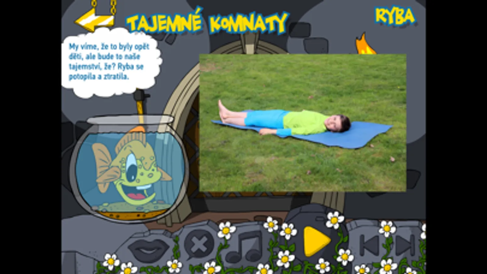 Jednotlivé cviky jsou použité v příběhu o zakletém hradu a relaxaci pro příjemné usínání.