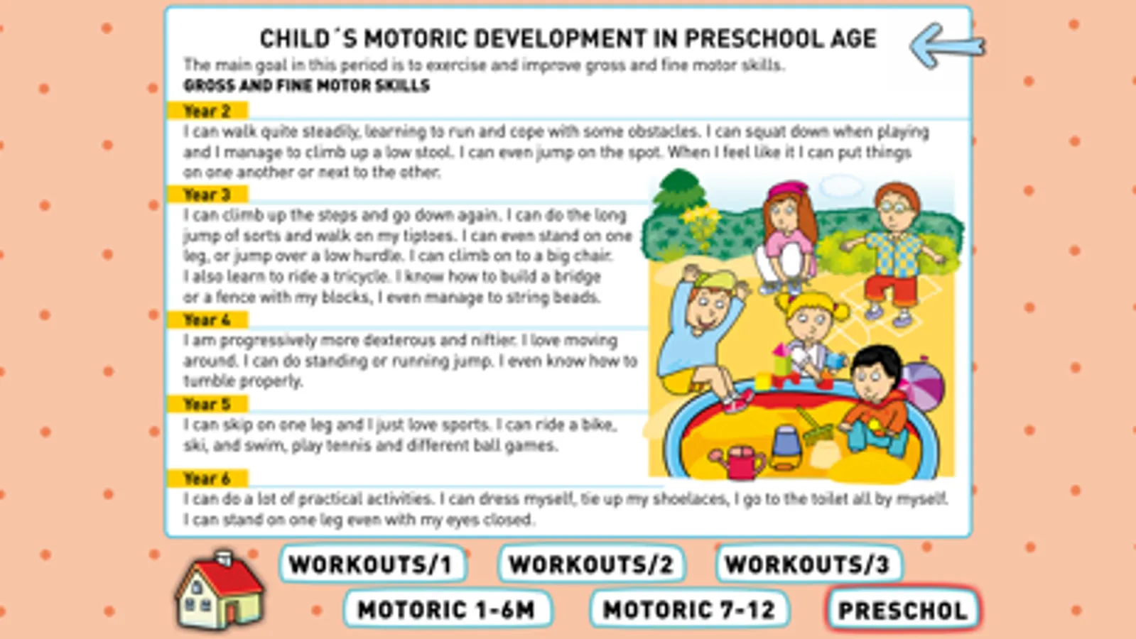 This app was created for pre-school kids and you will find there a set of workouts accompanied by simple nursery rhymes. These rhythmical verses will unobtrusively lead your child through individual physical activities, helping to develop its skills and improving its speech. Thanks to the workouts, physical exercise will grow to be a game for your child. Yet, the most important factor in this respect is the time you devote to your kid, the time spent in sharing experience and playing together.