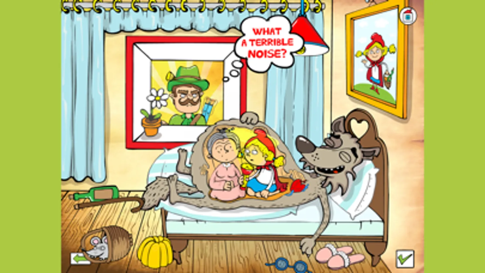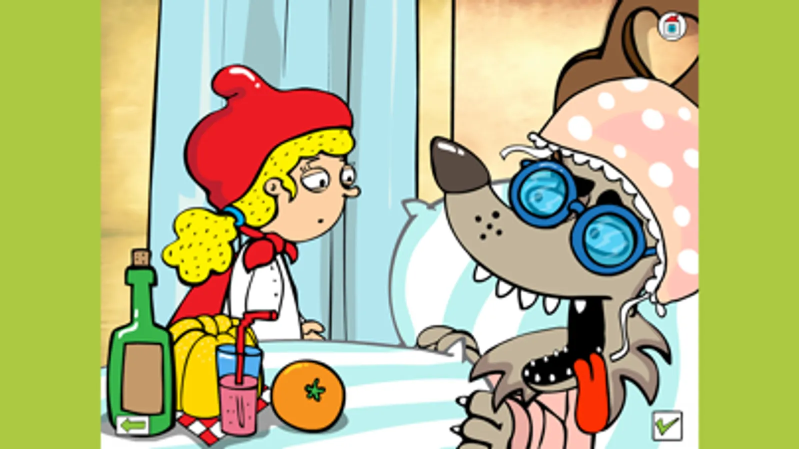 You can decide if you want to listen to the narrator, while your children explore the forest and grandmother´s cottage. Another possibility is to read the interactive book together with your children. The texts in comic balloons will takes you through the story. There are highlighted areas for children's restless fingers and vivid imagination. All objects in the scenes are beautifully animated and accompanied by sound. It is amusing to touch the individual parts of the picture.