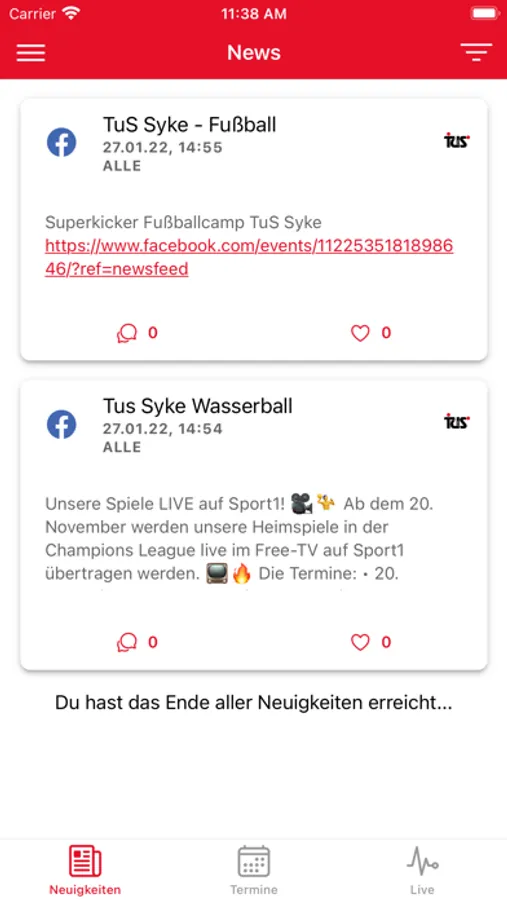 Durch die Einbindung sozialer Netzwerke kannst du das Geschehen im Verein brandaktuell mitverfolgen.