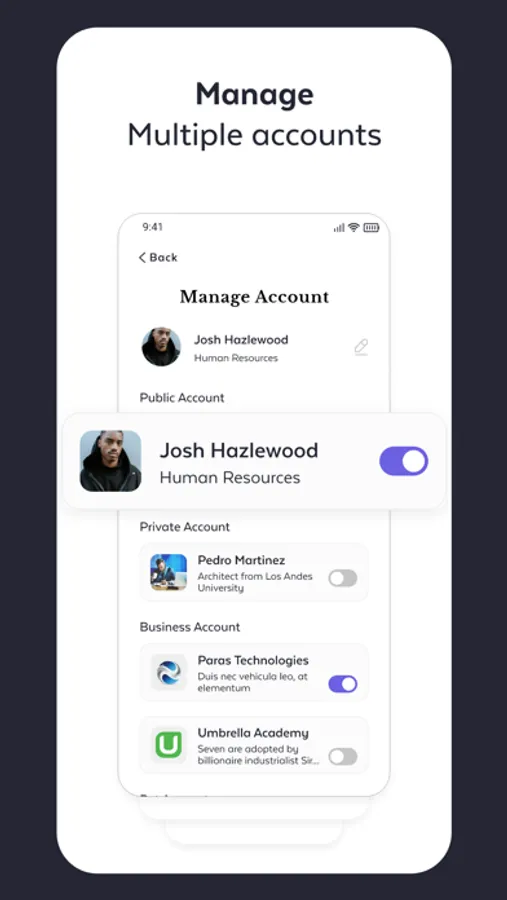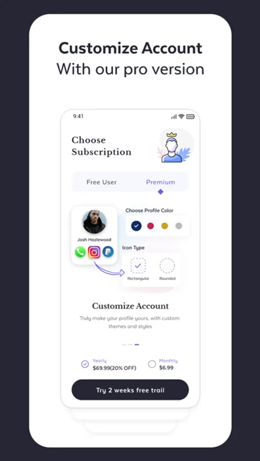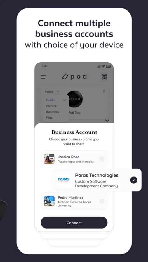 The pod app Allows you to customize more than one profile between personal, business