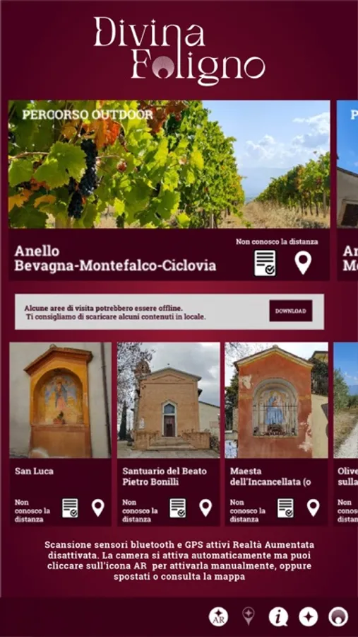 Divina Foligno ti consente di visitare il territorio in sicurezza ed autonomia, con una unica app potrai gestire la tua visita senza dover scaricare continuamente applicazioni in ogni luogo che frequenti.