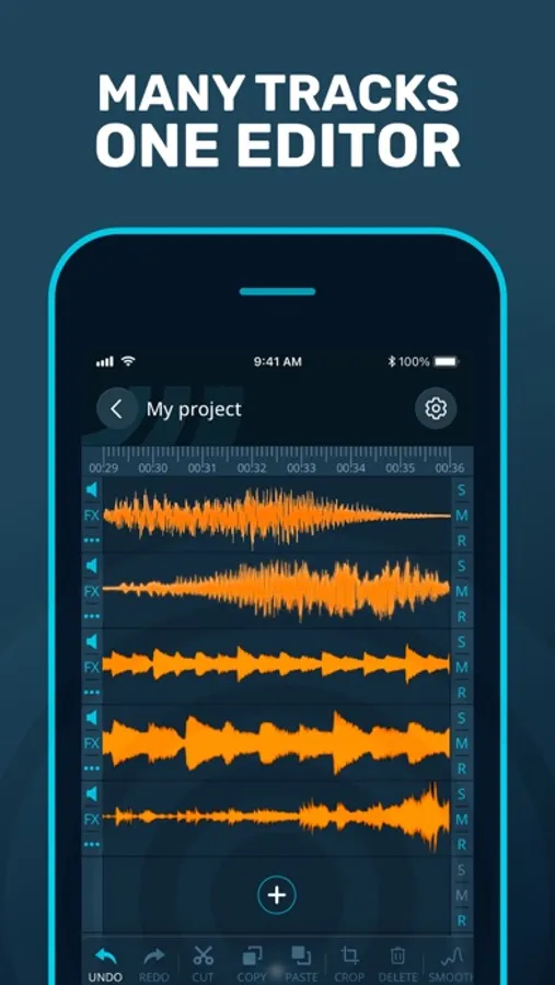 Start a new project and add an audio file. You can start editing a single track or add more and edit them simultaneously! Various effects, filters, 6 band equalizer and other settings. The best thing about multitrack editing is that it allows you to edit tracks separately. No need to make changes to the whole mix when you can do this individually before rendering the tracks into the final result.