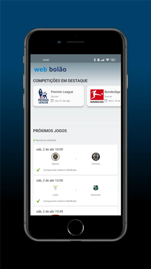 Crie desafios entre amigos e divirta-se com bolões dos principais campeonatos do mundo.