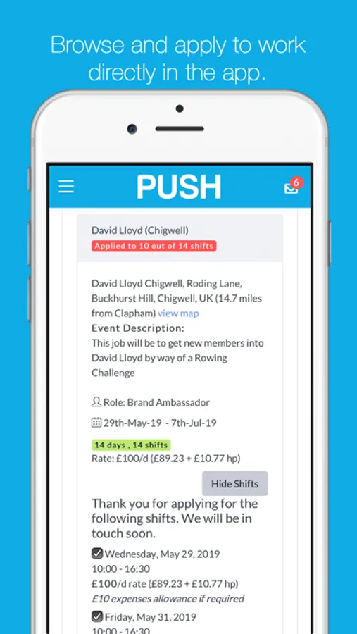 Using this app, you can locate work by browsing our ‘Jobs Market’ and keep your availability up to date so you never miss that next exciting role with your favourite brand. With this app, you are able to check-in and check-out on every shift, meaning that those unnecessary phone calls to confirm you have arrived are gone forever.