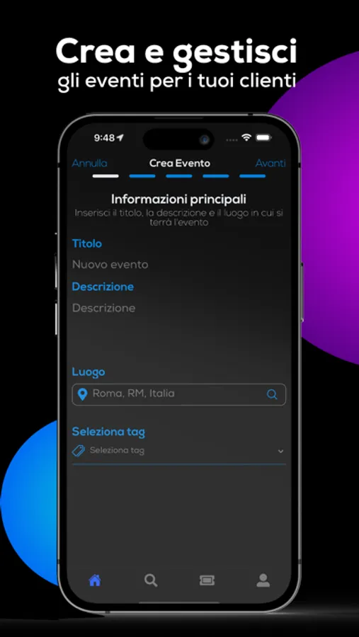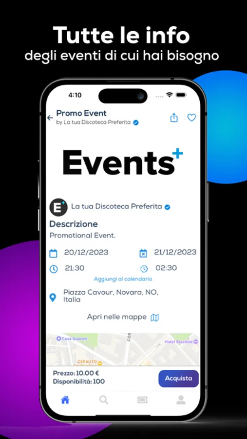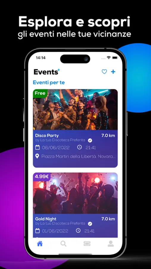 Con EventsPlus hai la possibilità di trovare gli eventi nella tua zona o gli eventi che più ti piacciono. Inoltre puoi anche creare nuovi eventi per le altre persone e farti conoscere dalla community