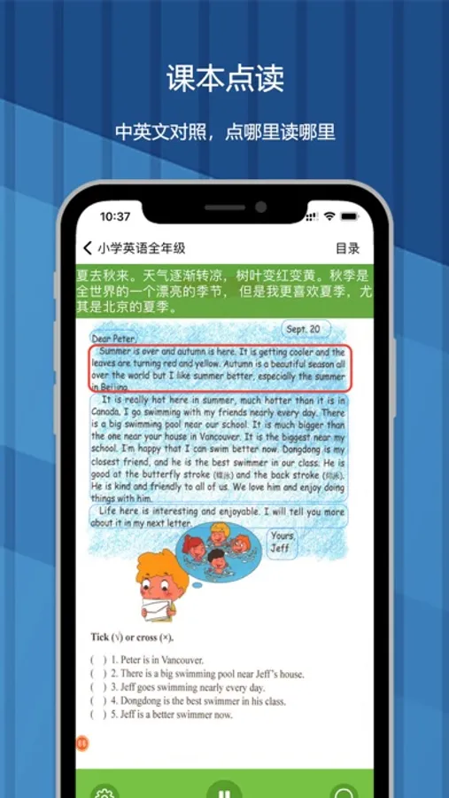读一句、读一页、读一单元都可以,支持锁屏播放