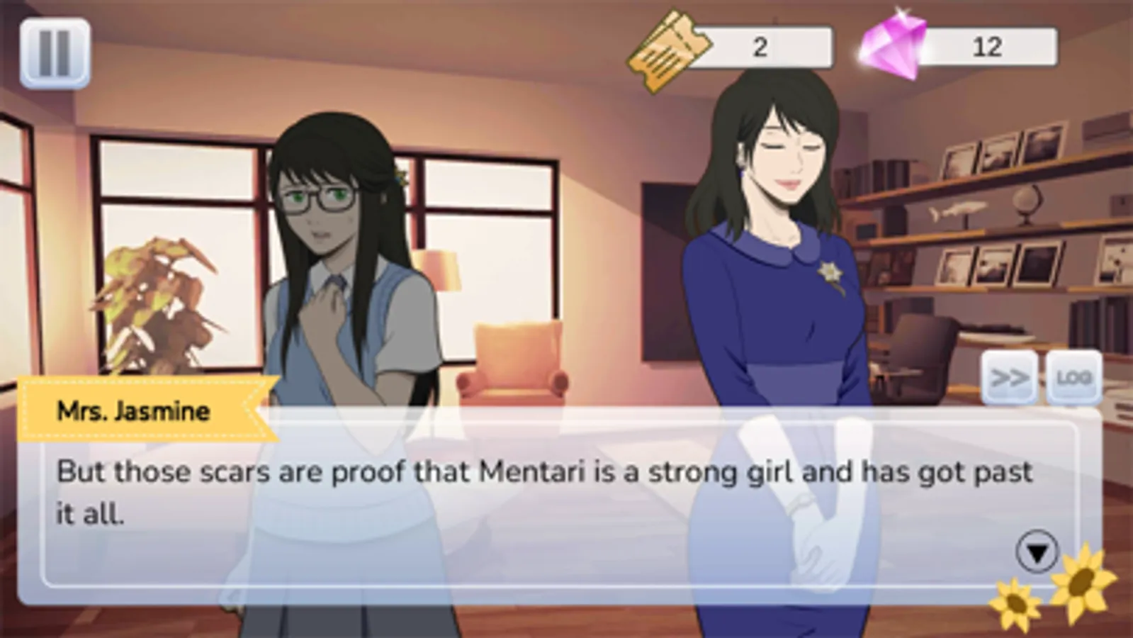 You play as Mentari, a victim of bullying who just transferred school and trying to recover from her past trauma. In the game, you will help her making choices through school life and experience life-changing events that will affect her future.