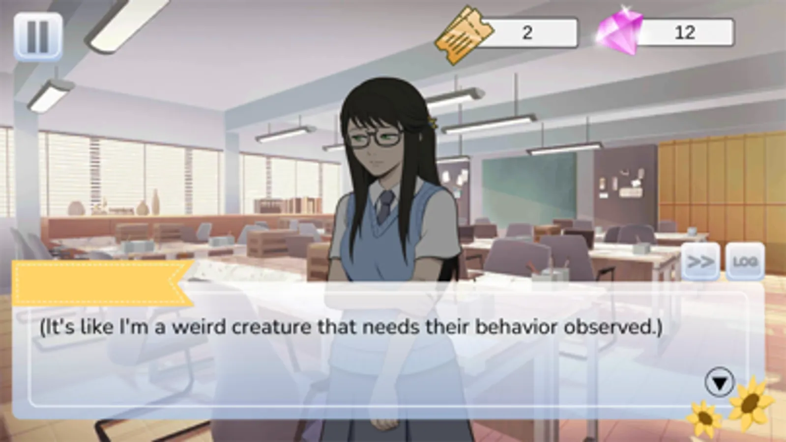 In school, there are many unique students, each with their own different characters and neuroses. There are three main characters which each different platonic routes depend on your choices throughout the story.
