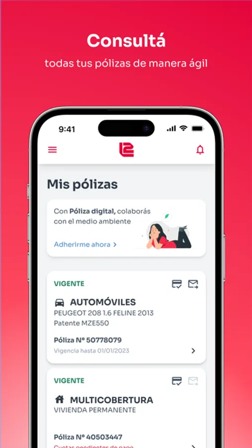 - Ver y descargar sus pólizas.