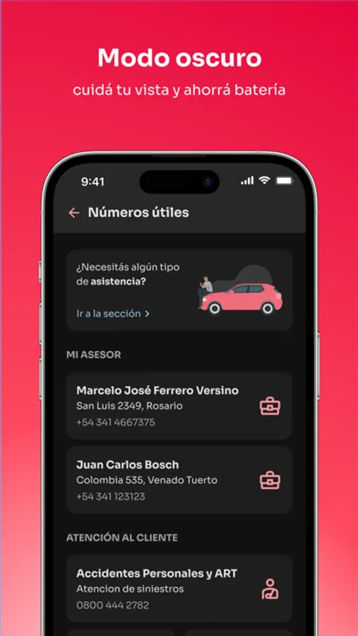 - Denunciar y consultar sus siniestros.