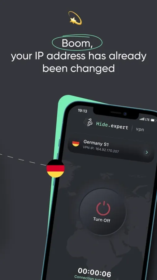 Data transfer security is ensured by the modern and fast IKEv2 protocol with maximum encryption. Your IP address will be hidden even if there was an accidental disconnection of the Internet connection or a switch from Wi-Fi to LTE or vice versa. With Hide Expert VPN, you are always protected at home, on the street, at work or in a public place via public Wi-Fi.