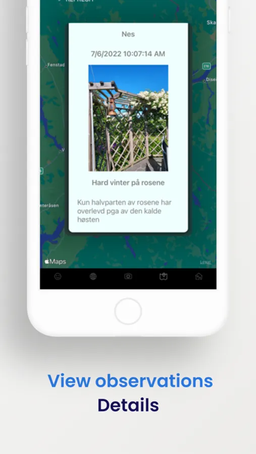 Make an observation and share it with others. View others observations using a slide show or on a map