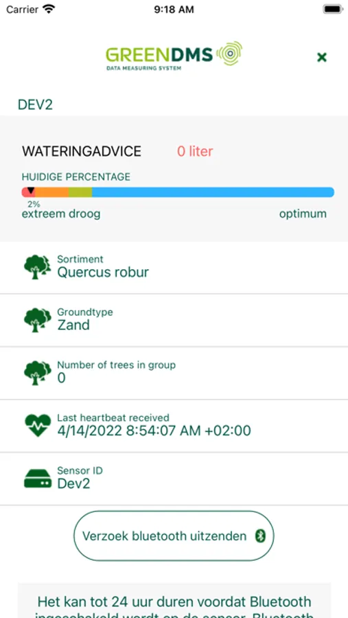Wij van GreenDMS willen met onze sensortechologie bijdragen aan een groenere wereld. De laatste decennia zien we steeds duidelijker de gevolgen van klimaatverandering, zoals droge periodes, of juist zeer natte periodes. Dit heeft tot gevolg dat veel (jonge) bomen vroegtijdig afsterven of minder vitaal worden. Als de bodem te weinig vocht bevat zal de beplanting niet of nauwelijks groeien. Als de bodem te veel vocht bevat zal de beplanting ook niet of nauwelijks groeien, omdat daardoor de zuurstof wordt verdrongen.