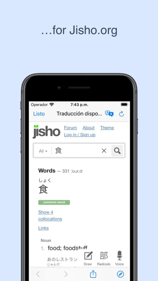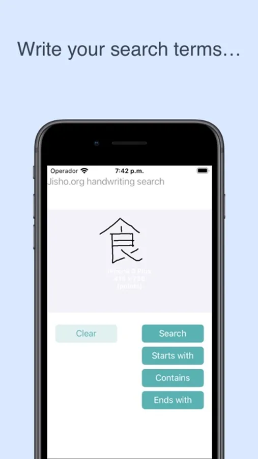 Search Japanese words in famous Jisho.org Japanese dictionary by handwriting recognition, using English, romaji, kana or kanji.